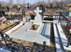 В ходе уборки мы: навели порядок в цветнике, удалили отцветшие растения и освободили место для растущих; тщательно промыли памятник, борта цветника, а также гранитный пол места захоронения. Дополнительно мы предложили клиентке открасить надписи на надгробье, однако от этой услуги заказчица отказалась.