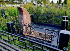 Приехав на кладбище, первым делом мы удалили кустарник, закрывающий памятник. Затем тщательно подмели цветник и территорию участка, после чего вытерли надгробье.